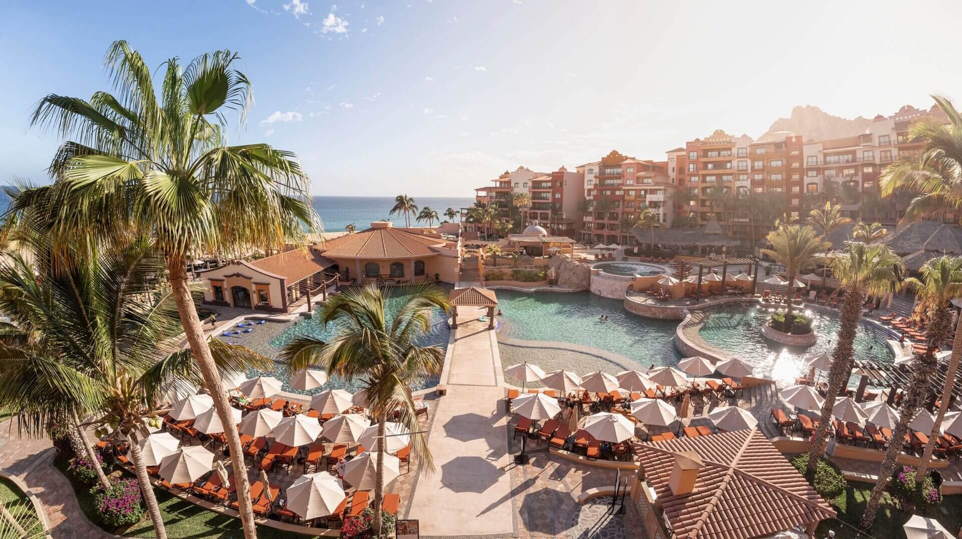 El hotel es Playa Grande Resort & Grand Spa 4⭐. Este complejo se encuentra escondido en la costa Pacífica de Cabo San Lucas por lo que estarás en una zona bastante tranquila, también te encontraras a 1 Km del centro de Cabo por lo que la diversión, gastronomía y vida nocturna que te ofrece este maravilloso destino no parara.